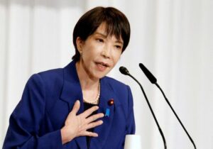 Japan’s former internal affairs minister Sanae Takaichi delivers a speech at the kick-off of the campaign for the LDP presidential election in Tokyo, Japan, September 22, 2025. Franck Robichon/Pool via REUTERS