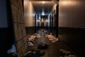 Escombros y objetos personales pertenecientes a inmigrantes venezolanos en el pasillo de un complejo de apartamentos, donde 37 personas fueron detenidas durante una redada a gran escala del ICE el martes 30 de septiembre de 2025, después de que el presidente de Estados Unidos, Donald Trump, orden aumentar la presencia de las fuerzas federales de seguridad para ayudar en la prevención del delito, en Chicago, Illinois, Estados Unidos 2 de octubre de 2025. REUTERS/Jim Vondruska