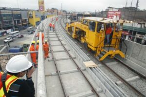 A locomotive is seen on a railway during the construction of the Electric Train project in Lima November 19, 2010. On July 2011, Peru’s capital, a city with more than 8 million habitants, will inaugurate the first section of an Electric Train that will cover 14 miles and transport 160,000 passengers per day. The concession for the construction of a second section that will cost 600 million dollars, will be held next December, according to the Ministry of Transport. REUTERS/Enrique Castro-Mendivil (PERU – Tags: SOCIETY TRANSPORT BUSINESS CONSTRUCTION)