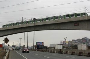 The Metro de Lima electric train travels on a bridge in the San Juan de Lurigancho district of Lima, September 2, 2014. The electric train, the first of its kind in the city, links the northern and southern districts of the capital, from Villa El Salvador to San Juan de Lurigancho. REUTERS/ Mariana Bazo (PERU – Tags: BUSINESS TRANSPORT)