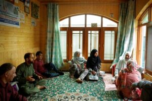 Patients wait as Noor Mohammad, a traditional bone setter, talks on his mobile phone in a room of his house in Srinagar, Indian Kashmir July 10, 2025. REUTERS/Sharafat Ali