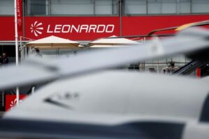 View of the Leonardo logo during the 55th International Paris Airshow at Le Bourget Airport near Paris, France, June 16, 2025. REUTERS/Benoit Tessier