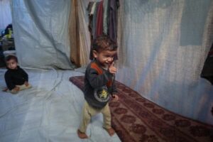Palestinian twins Uday (L) and Hamza Abu Odah play inside their tent where they shelter with their mother and siblings, in Mawasi area, in Khan Younis in the southern Gaza Strip, September 13, 2025. Uday and Hamza were born on 2 November 2023, less than four weeks after the Hamas attack that triggered Israel’s devastating assault on Gaza that has defined and encompassed their brief lives. They have lost their home and lived in tents and on the street. Their father was killed seeking aid and two brothers were wounded. They have suffered constant hunger, frequent bouts of sickness and repeated episodes of terrifying bombardment. Their mother Iman is frightened that the longer Israel’s assault goes on, the more they – and the new generation of Gazans – will be scarred. “We are afraid this war will never stop, that it has a beginning and no end,” she said. REUTERS/Ramadan Abed SEARCH “GAZA TWINS ODAH” FOR THIS STORY. SEARCH “WIDER IMAGE” FOR ALL STORIES.