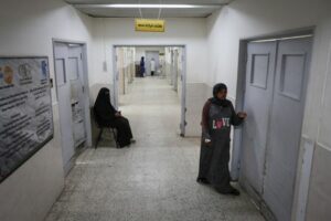Palestinian women wait outside the maternity ward of Nasser hospital where Palestinian woman Iman Abdel Halim Abu Mutlaq gave birth to her twin sons, Uday and Hamza Abu Odah, in November 2023, in Khan Younis in the southern Gaza Strip, September 25, 2025. Uday and Hamza were born on 2 November 2023, less than four weeks after the Hamas attack that triggered Israel’s devastating assault on Gaza that has defined and encompassed their brief lives. They have lost their home and lived in tents and on the street. Their father was killed seeking aid and two brothers were wounded. They have suffered constant hunger, frequent bouts of sickness and repeated episodes of terrifying bombardment. Their mother is frightened that the longer Israel’s assault goes on, the more they – and the new generation of Gazans – will be scarred. “We are afraid this war will never stop, that it has a beginning and no end,” she said. REUTERS/Ramadan Abed SEARCH “GAZA TWINS ODAH” FOR THIS STORY. SEARCH “WIDER IMAGE” FOR ALL STORIES.