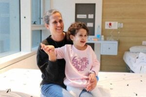 FILE PHOTO: Avigail Idan, who was released after being taken hostage during the October 7 attack on Israel by the Palestinian militant group Hamas, smiles on the lap of her aunt Leron at Schneider Children’s Medical Center of Israel in Petah Tikva, Israel, in this handout picture released by Schneider Children’s Medical Center of Israel on November 27, 2023. Schneider Children’s Medical Center of Israel/Handout via REUTERS/File Photo