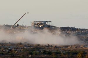 FOTO DE ARCHIVO: Edificios destruidos tras las explosiones en Gaza, vistos desde el sur de Israel, 7 de octubre de 2025. REUTERS/Ammar Awad