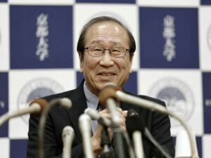 Japanese scientist Susumu Kitagawa who won the 2025 Nobel Prize in Chemistry speaks at a press conference in Kyoto, Japan, in this photo taken by Kyodo October 8, 2025. Mandatory credit Kyodo/via REUTERS