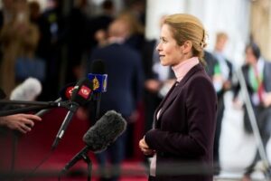 La Alta Representante de la UE para Asuntos Exteriores y Política de Seguridad, Kaja Kallas, habla con los medios de comunicación a su llegada a una cumbre informal en el Parlamento danés en el castillo de Christiansborg en Copenhague, Dinamarca. 1 de octubre de 2025. Ritzau Scanpix/Thomas Traasdahl via REUTERS ATENCIÓN EDITORES – ESTA IMAGEN FUE PROPORCIONADA POR TERCEROS. DINAMARCA FUERA. PROHIBIDA LA VENTA COMERCIAL O EDITORIAL EN DINAMARCA.