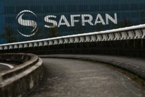 The logo of French aerospace group Safran is seen at Safran Engineering Services Headquarters in Blagnac near Toulouse, France, April 4, 2025. REUTERS/Gonzalo Fuentes