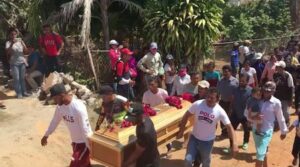 FOTO DE ARCHIVO Personas cargan un ataúd durante el funeral de un minero fallecido tras el derrumbe de una mina ilegal de oro en La Paragua, Bolívar, Venezuela, el 22 de febrero de 2024. (Imagen tomada de un video). REUTERS TV vía REUTERS