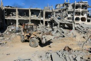 Heavy machinery removes debris from a street, amid a ceasefire between Israel and Hamas, in Gaza City, October 14, 2025. REUTERS/Dawoud Abu Alkas