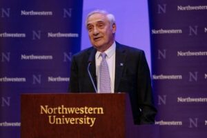 Joel Mokyr, a professor at Northwestern University who won the 2025 Nobel economics prize alongside Peter Howitt of Brown University and Philippe Aghion of the College de France, INSEAD, and the London School of Economics and Political Science, speaks at a press conference on campus in Evanston, Illinois, U.S. October 13, 2025. REUTERS/Jim Vondruska