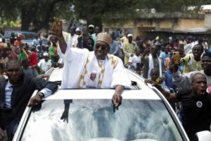 FILE PHOTO: Presidential candidate Issa Tchiroma Bakary of the Cameroon National Salvation Front (FSNC) waves as he arrives during the launch of his electoral campaign in Yagoua, Cameroon September 30, 2025. REUTERS/Desire Danga Essigue/File Photo