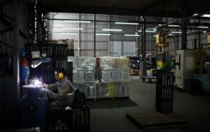 Un trabajador durante su jornada de trabajo en la fábrica Lumilagro, que enfrenta dificultades por los altos costos de producción, en la localidad de Tortuguitas, en las afueras de Buenos Aires, Argentina, October 3, 2025. REUTERS/Agustin Marcarian