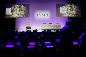 Luxury giant LVMH presents full year results in Paris October 15, 2025 October 15, 2025 The logo of LVMH is projected on a wall in Paris, France, January 28, 2025. REUTERS/Benoit Tessier