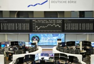 FOTO DE ARCHIVO-Gráfico del índice alemán DAX en la Bolsa October 17, 2025 October 17, 2025 Gráfico del índice bursátil alemán DAX en la bolsa de Fráncfort, Alemania, 6 de octubre de 2025. REUTERS/personal