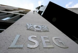 FILE PHOTO: Signage is seen outside the LSEG (London Stock Exchange Group) headquarters in Paternoster Square, London, Britain, April 25, 2025. REUTERS/Toby Melville//File Photo