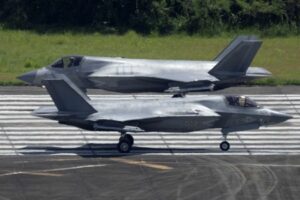 Zwei F-35-Kampfjets des U.S. Marine Corps rollen auf der Rollbahn der ehemaligen Roosevelt Roads Militärbasis in Ceiba, Puerto Rico, am 30. September 2025. REUTERS/Ricardo Arduengo
