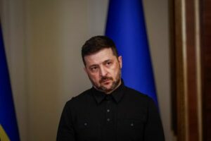 FOTO DE ARCHIVO. El presidente de Ucrania, Volodímir Zelenski, asiste a una rueda de prensa conjunta con la Alta Representante para Asuntos Exteriores y Política de Seguridad, Kaja Kallas (no en la foto), en medio del ataque de Rusia a Ucrania, en Kiev, Ucrania. 13 de octubre de 2025.. REUTERS/Alina Smutko