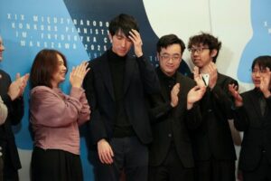 Eric Lu of the U.S. reacts as he is announced as a winner of the 19th International Fryderyk Chopin Piano Competition, in the concert hall of the National Philharmonic, in Warsaw, Poland, October 21, 2025. REUTERS/Aleksandra Szmigiel