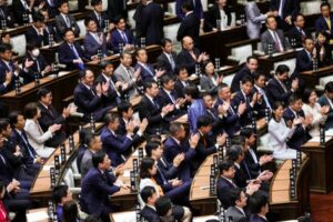 Leader of Japan’s ruling Liberal Democratic Party (LDP) Sanae Takaichi walks back to her seat during a session to elect the new prime minister, at the Lower House of Parliament in Tokyo, Japan October 21, 2025. REUTERS/Kim Kyung-Hoon
