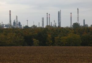 General view of Hungarian MOL Group’s Danube Refinery after a fire broke out at a feed processing unit on late Monday in Szazhalombatta, Hungary, October 21, 2025. REUTERS/Bernadett Szabo