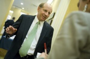 ARCHIV: Harris Simmons, CEO von Zions Bancorp, spricht mit einem Reporter auf dem American Banker Regulatory Symposium in Washington am 20. September 2011. REUTERS/Jonathan Ernst (VEREINIGTE STAATEN – Tags: POLITIK – GESCHÄFT)