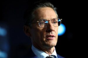 FILE PHOTO: Dutch JA21 party leader Joost Eerdmans speaks to the media, following an election debate in the run-up to the House of Representatives elections in Hilversum, Netherlands, October 19, 2025. REUTERS/Piroschka van de Wouw/File Photo