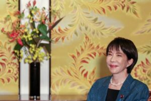 FOTO DE ARCHIVO: La líder del gobernante Partido Liberal Democrático (PLD) de Japón, Sanae Takaichi, reacciona durante una reunión con Hirofumi Yoshimura (no en la foto), líder del Partido de la Innovación de Japón, conocido como Ishin, en el Edificio de la Dieta Nacional de Japón en Tokio, Japón. 20 de octubre de 2025. REUTERS/Kim Kyung-Hoon