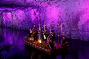 Taiwanese opera singer Wei Hai-min performs on a raft inside Zhaishan Tunnel during the annual Kinmen Tunnel Music Festival in Kinmen, Taiwan, October 19, 2025. REUTERS/Ann Wang