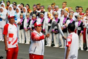 FOTO DE ARCHIVO: El presidente indonesio, Joko Widodo, entrega la antorcha de los Juegos Asiáticos al jefe del Comité Organizador de los Juegos Asiáticos 2018 de Indonesia, Erick Thohir, junto al héroe indonesio de bádminton Rudy Hartono en el palacio presidencial en Yakarta, Indonesia, 17 de agosto de 2018. REUTERS/Beawiharta