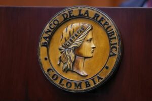 FOTO DE ARCHIVO: Logo del Banco Central de Colombia dentro de la sede de la entidad durante una rueda de prensa en Bogotá, Colombia, Enero 31, 2025. REUTERS/Luisa González