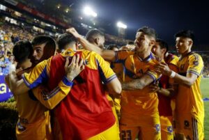 Foto de archivo de jugadores de Tigres UANL festejando tras