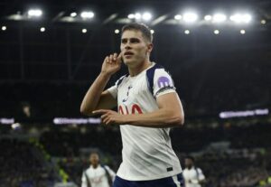 Soccer Football – Premier League – Everton v Tottenham Hotspur – Hill Dickinson Stadium, Liverpool, Britain – October 26, 2025 Tottenham Hotspur’s Micky van de Ven celebrates scoring their second goal Action Images via Reuters/Jason Cairnduff