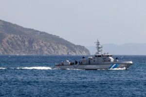 A Hellenic Coast Guard vessel conducts Search and Rescue (SAR)