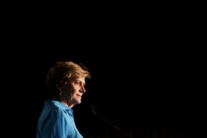 La candidata presidencial Evelyn Matthei da un discurso durante el lanzamiento oficial de su campaña presidencial en Santiago de Chile el 4 de junio de 2025. REUTERS/Pablo Sanhueza
