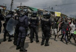 Supporters of the Cameroon opposition candidate Issa Tchiroma, protest after the Constitutional Council declared President Paul Biya as the winner of the October 12 presidential election in Douala, Cameroon, October 27, 2025. REUTERS/Zohra Bensemra