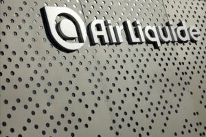 The logo of Air Liquide is seen at a hydrogen station in Paris, France, October 24, 2024. REUTERS/Sarah Meyssonnier