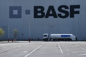 ARCHIV: Ein Lastwagen fährt an einem Lager des deutschen Chemieunternehmens BASF vorbei, in Ludwigshafen, am 23. April 2015. REUTERS/Ralph Orlowski