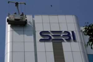 FILE PHOTO: Workers clean the facade of Securities and Exchange Board of India (SEBI) headquarters in Mumbai, India, March 24, 2025. REUTERS/Hemanshi Kamani/File Photo