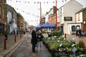 Reform UK Council leader of West Northamptonshire Mark Arnull talks to a member of the local community in Daventry, Britain, October 21, 2025. REUTERS/Jaimi Joy