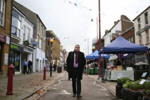 Reform UK Council Leader Mark Arnull walks on the high street of Daventry, Britain, October 21, 2025. REUTERS/Jaimi Joy
