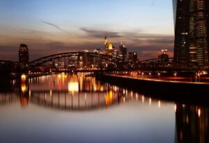 ARCHIV: Die Skyline der Stadt mit ihren Bankentürmen wird bei Sonnenuntergang fotografiert, während sich die Coronavirus-Krankheit (COVID-19) weiter ausbreitet, in Frankfurt, Deutschland, 8. April 2021. REUTERS/Kai Pfaffenbach
