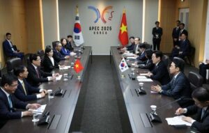 El presidente de Vietnam, Luong Cuong, habla con el presidente de Corea del Sur, Lee Jae Myung, durante una reunión paralela de la cumbre del Foro de Cooperación Económica Asia-Pacífico (APEC) en Gyeongju, Corea del Sur. 30 de octubre de 2025. Yonhap vía REUTERS. ESTA IMAGEN HA SIDO SUMINISTRADA POR TERCEROS. NO REVENTAS. NO ARCHIVOS. COREA DEL SUR FUERA. PROHIBIDA LA VENTA COMERCIAL O EDITORIAL EN COREA DEL SUR.