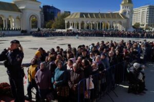 People wait in line to visit the National Cathedral, the world’s largest Orthodox church, in Bucharest, Romania, October 29, 2025. REUTERS/Andreea Campeanu