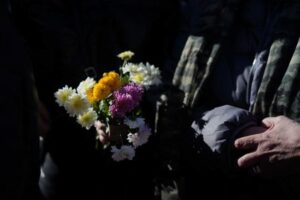 A person holds flowers as people wait in line to visit the National Cathedral, the world’s largest Orthodox church, in Bucharest, Romania, October 29, 2025. REUTERS/Andreea Campeanu