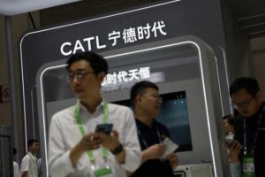 People visit the booth of battery giant CATL during the China International Supply Chain Expo in Beijing, China July 16, 2025. REUTERS/Florence Lo