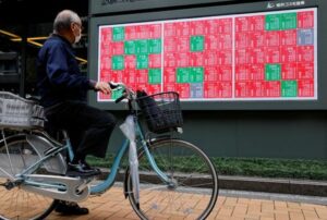 A man looks at a stock quotation board displaying the Nikkei share average outside a brokerage in Tokyo, Japan, October 21, 2025. REUTERS/Manami Yamada