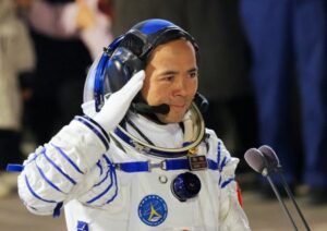 Astronaut Zhang Lu salutes during a see-off ceremony before taking part in the Shenzhou-21  spaceflight mission to China’s Tiangong space station, at Jiuquan Satellite Launch Center, near Jiuquan, Gansu province, China October 31, 2025. REUTERS/Maxim Shemetov