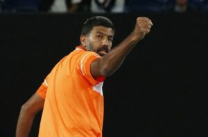 Tennis – Australian Open – Melbourne Park, Melbourne, Australia – January 27, 2024 India’s Rohan Bopanna reacts during the men’s doubles final with Australia’s Matthew Ebden against Italy’s Simone Bolelli and Andrea Vavassori REUTERS/Ciro De Luca